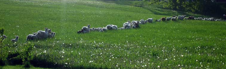 Plötsligen hördes ett bräkande utanför huset! Det var vår granne som flyttade sina får över gårdsplanen och över vallen. Flyttningen gick snabbt och effektivt under överinseende av en duktig vallhund.