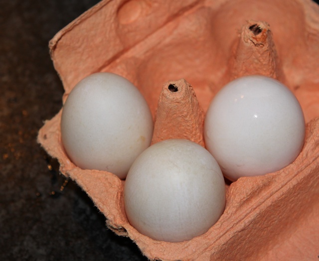Hönsen värper fortfarande dåligt men nu har ankorna lagt sina första ägg. Det blev en kaka med blåbär av ankäggen!