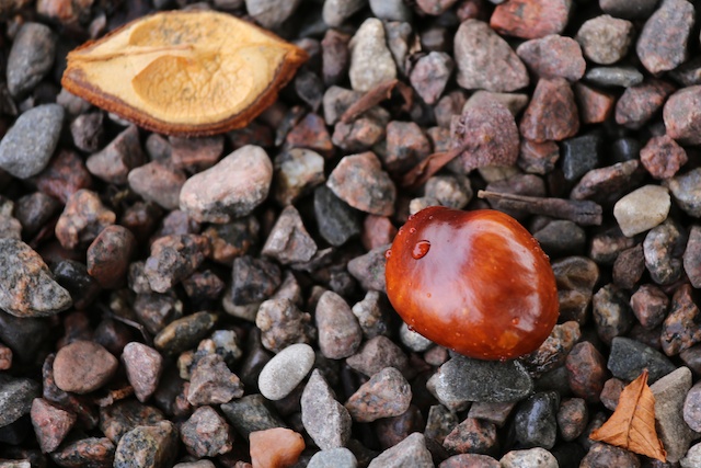 Strålande höstväder, visserligen dimmigt på morgonen men solen fräter så småningom bort det grå. Nu börjar kastanjen ge oss höstens arbetsläger då vi få räfsa ihop alla löv från vårt vårdträd.
